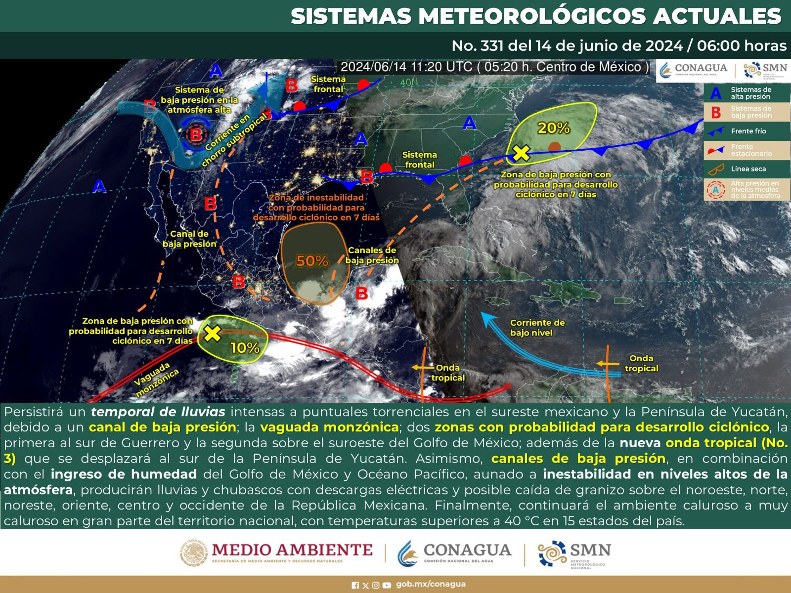 La primera al suroeste del Golfo de México y la otra inmersa en la vaguada monzónica (una región con presencia de lluvias o ciclones que se forma en las áreas tropicales y subtropicales) extendida próxima y paralela a las costas de Guatemala, Chiapas y Oaxaca.