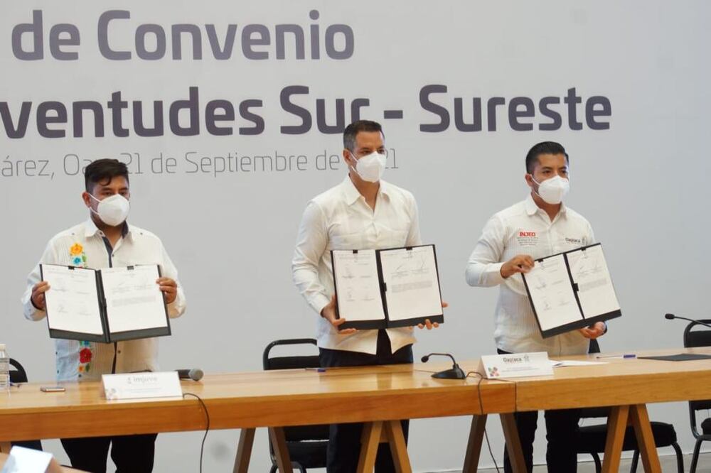 Mientras que Jauri Sánchez Cruz, director general del Instituto de la Juventud de Oaxaca, refrendó el compromiso de los Institutos para intensificar las acciones que ya se están realizando encaminadas al desarrollo del sureste de México. “Somos hermanos del sur, con cronologías en común. Nos sentimos dichosos de nuestra región, nuestros recursos, gente y riquezas; pero también somos conscientes de los retos grandes a los que nos enfrentamos y justamente por ello es importante realizar este tipo de alianzas con nuestras juventudes”, expresó.