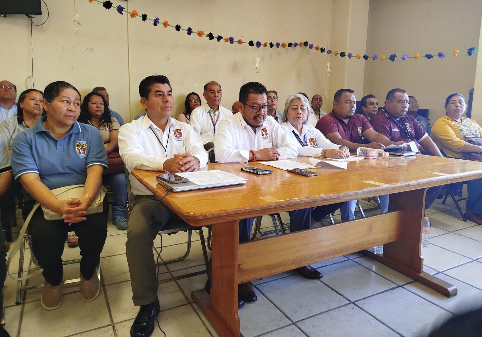 Carrasco Martínez, dijo que entre las violaciones a los derechos laborales se encuentra el retraso del pago de varios trabajadores hasta por siete quincenas, además, añadió, hay un rezago de un año de 50 procesos escalafonarios para cubrir vacancias por jubilaciones, fallecimientos o ceses.